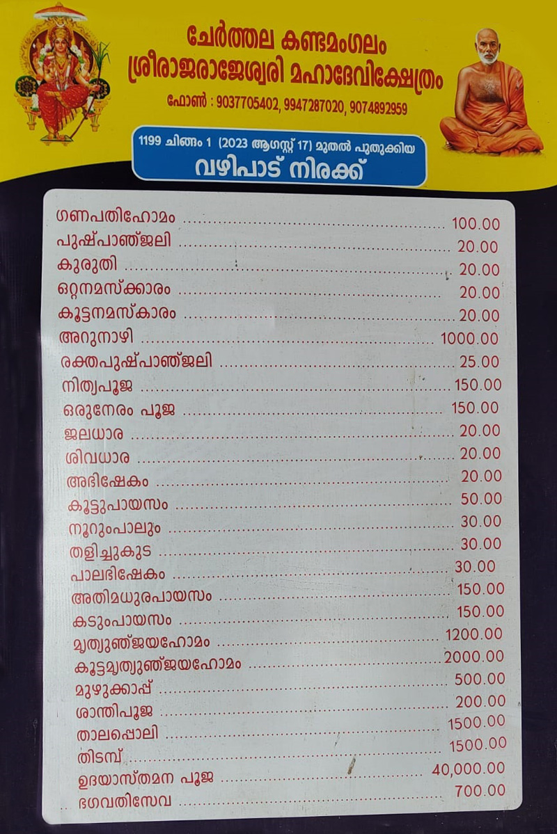 - 3. നിറമാലയും പൂജയും : 10000/-