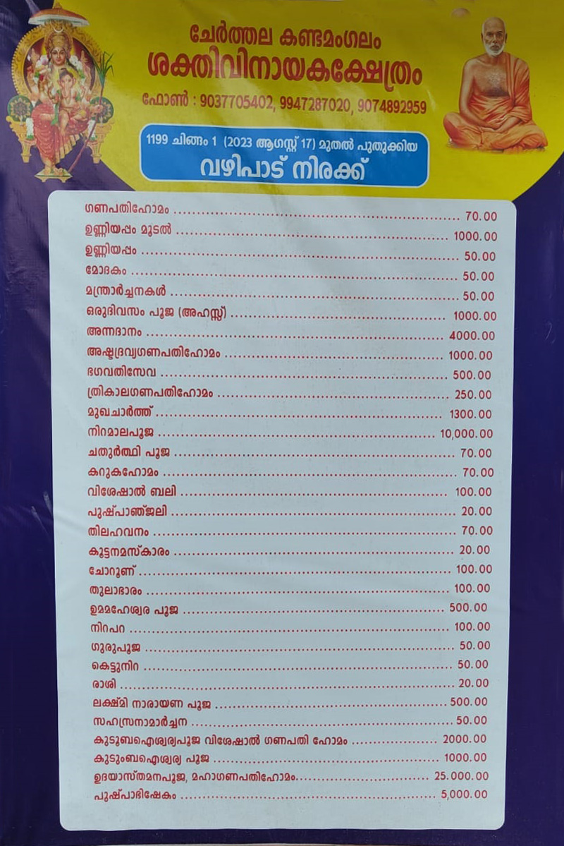 - 9. മഹാഗണപതി ഹോമം : 70/-